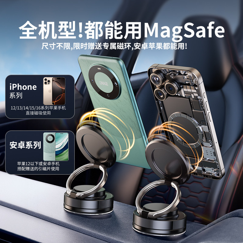 2025新款车载手机支架真空吸附磁吸magsafe汽车导航专用吸盘旋转折叠便携浴室多功能桌面墙壁通用支撑固定
